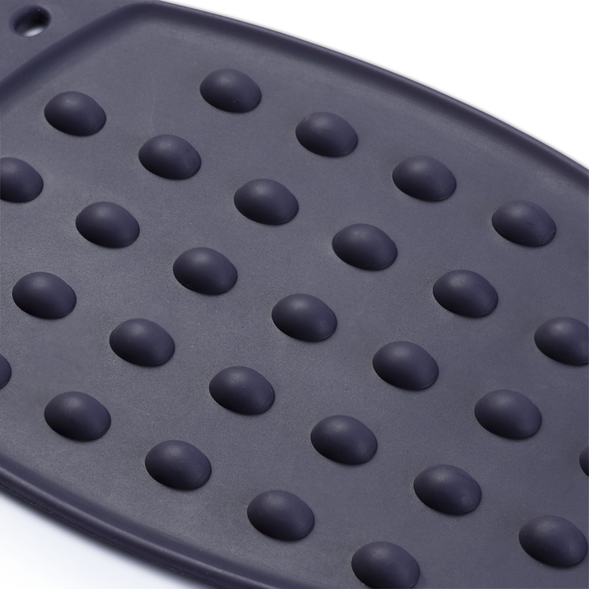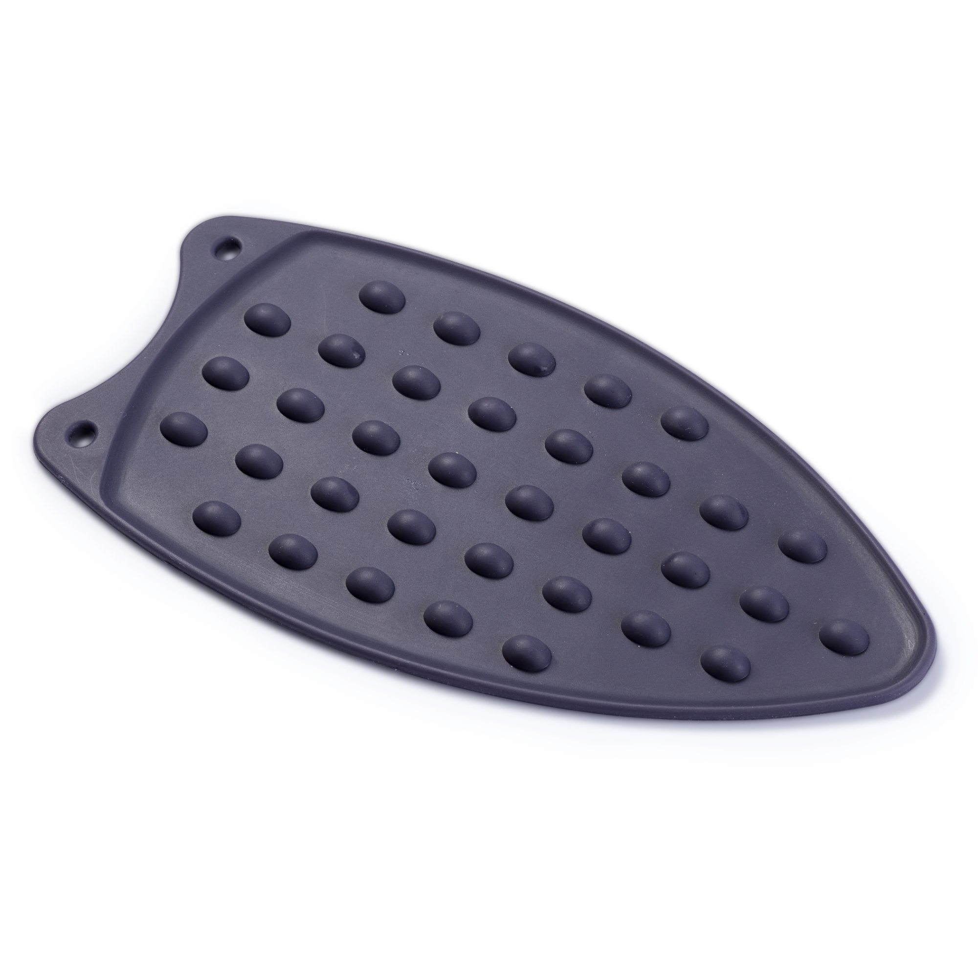 The iron rest in plum-coloured silicon offers flexibility when putting down a hot iron for short periods. The iron sits safely on the pimpled iron-shaped rest and is always ready to hand, when you are working. When steam-ironing, it is preferable to stand the iron horizontally and using the ironing blanket makes this rest exceptionally practical and safe.