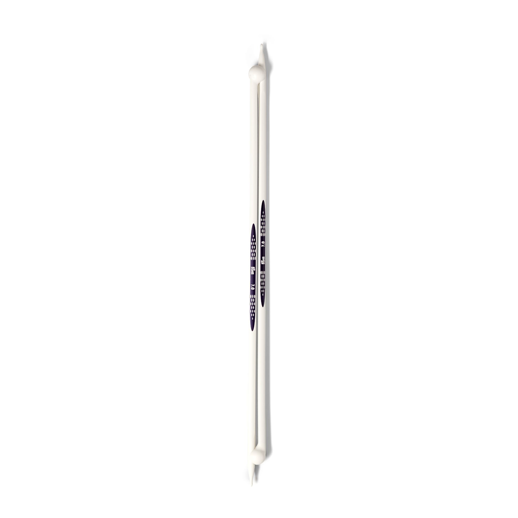 The innovative prym.ergonomics single-pointed knitted needles are a synonym for ease of knitting. The alabaster white knitting needles are made from high-performance synthetic material and are light and flexible and sit comfortably in the hand. The drop-shaped points make the single-pointed knitted needles ideal for beginners, since the yarn slides so easily over the points and picking up the yarn becomes extremely easy. The shaft of the needle is rounded at the front and changes to a triangular cross-section - this allows the stitches to glide freely and easily. The click heads are brilliantly designed to keep two needles together as a pair on one hand and on the other they serve as stitch stoppers. The needle gauges are printed centrally on the needles. All in all: The prym.ergonomics single-pointed knitted needles offer pure knitting joy, even when used over long periods.