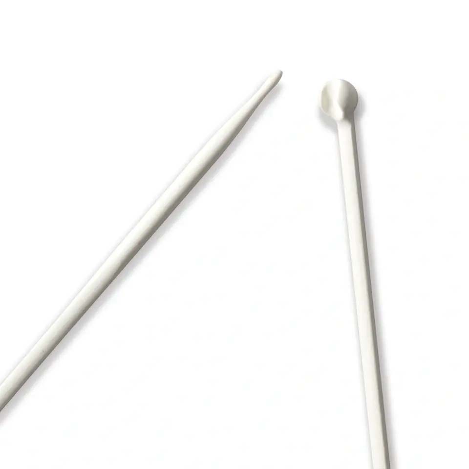 The innovative prym.ergonomics single-pointed knitted needles are a synonym for ease of knitting. The alabaster white knitting needles are made from high-performance synthetic material and are light and flexible and sit comfortably in the hand. The drop-shaped points make the single-pointed knitted needles ideal for beginners, since the yarn slides so easily over the points, and picking up the yarn becomes extremely easy. The shaft of the needle is rounded at the front and changes to a triangular cross-section - this allows the stitches to glide freely and easily. The click heads are brilliantly designed to keep two needles together as a pair on one hand and on the other they serve as stitch stoppers. The needle gauges are printed centrally on the needles. All in all: The prym.ergonomics single-pointed knitted needles offer pure knitting joy, even when used over long periods.