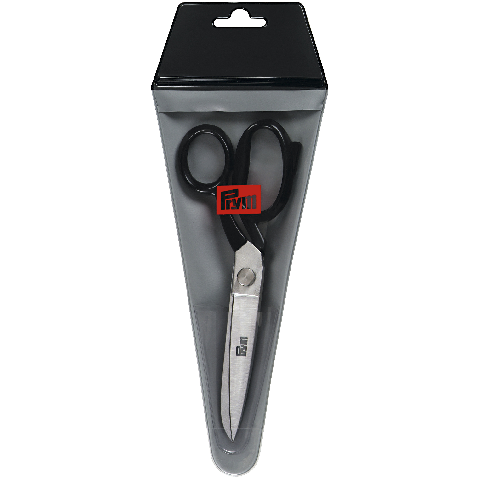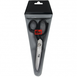 These tailor's scissors from Prym are classics - top quality from handle to point. They are forged completely from high quality steel and their weight and well-designed centre of gravity are indispensable aids for professional dressmaking and tailoring. Individually sharpened by hand and tested to ensure reliability, the most impressive features of these tailor's scissors are their smooth cutting action and long durability. The asymmetrical shape of the scissors prevents the fabric lifting and shifting, since the whole length of the lower blade of the scissors lies straight on the work surface while cutting. When used for long periods, the cutting performance of the textile scissors and the direction of cutting can be re-adjusted by tightening the screw.