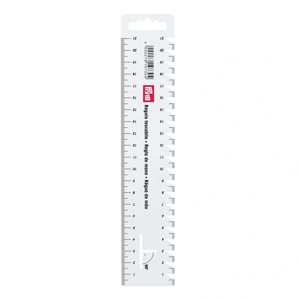 The small hand gauges from Prym are very suitable for working directly with the sewing machine. Made from flexible plastic, they are light and at the same time sturdy. On both sides, there is an absolutely precise centimetre scale with stitch length control and aid for marking 90° angles. The hand gauge is flexible and therefore clings perfectly to the fabric and pattern for accurate measurement and the notches make exact marking possible. In sizes of 4 cm x 11.5 cm or 4.5 cm x 23 cm, this useful accessory is an asset in every sewing basket.