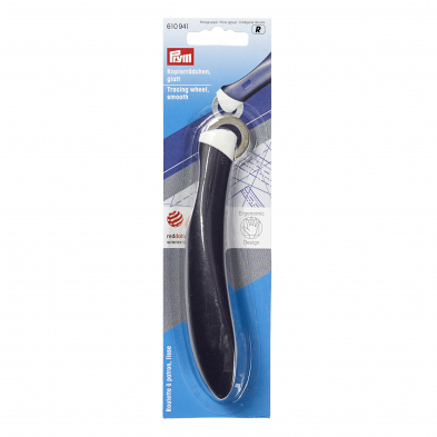 If pattern lines are to be transferred on paper or fabric, the tracing wheel from the prym.ergonomics series is a useful sewing accessory. While the smooth tracing wheel draws a solid line, the Prym toothed tracing wheel draws dotted lines on the material or pattern paper. The wheels are characterized by a quiet and smooth running and can be run perfectly on every line. Also marks in cut sections, such as tucks or pocket positions can be transferred simply using the Prym tracing wheel and tracing paper.
