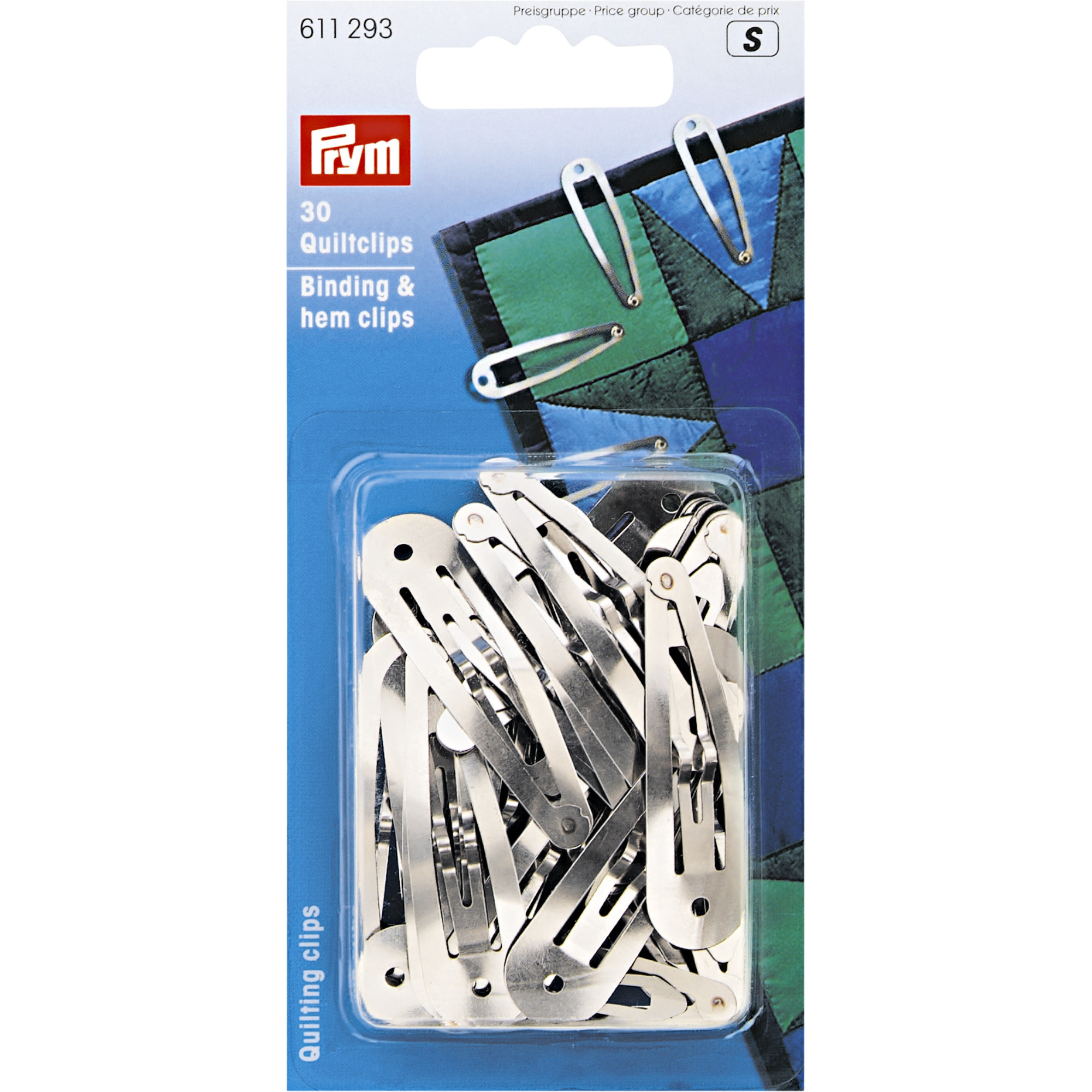 A helping hand is often needed when working, and even pins are not always the right sewing accessory for affixing. Prym's binding & hem clips are ideally suited for edging patchwork blankets. Acting like a hair clip, the thirty clips can effortlessly affix the edging, the binding of patchwork, in the desired position until it is finished. But this sewing accessory is not just an ideal aid for quilting. These binding & hem clips can also be used in many other sewing steps. These clips make work tremendously easier whenever two fabric parts, cutting templates, or stencils need to be affixed to the edge.