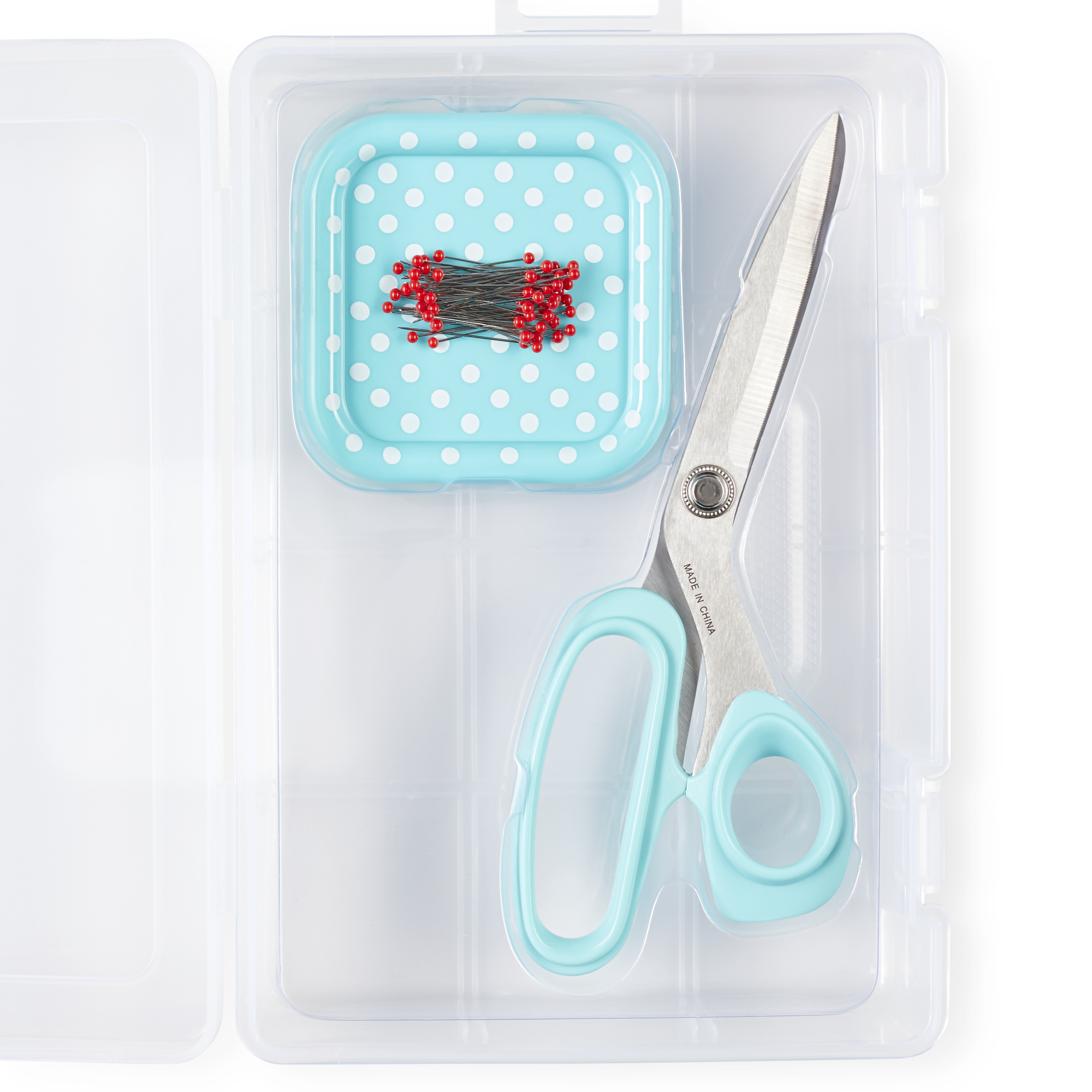 Everything in one box: The colourful Sewing Start Set from the Prym Love series contains all the essential utensils for the beginner. For the home, on the move at the workshop or as a gift, the transparent plastic box with its high-quality accessories is a companion you cannot be without. The two levels keep the tools in their fresh Prym Love colours tidily organised in the box. The box contains: one pair of scissors, one full needle case, one magnetic pin cushion with glass-headed pins, marking pens with white refill, hand gauge, prym.ergonomics stitch rippers and a mini needle cushion etc.