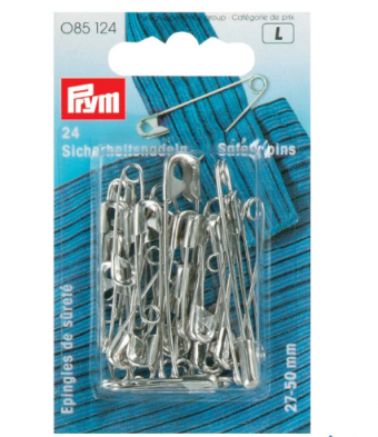 Steel safety pins are the most utilised securing aids when sewing, quilting and doing patchwork and are also universally used in many day-to-day situations. They are coated with rust protection, and the sleek tips make them easy to insert, even in thick and firm material, and are gentle on the fabric. The pins also have a high level of fastening force when opened and closed frequently, since the steel used has balanced spring force. Prym provides the silver or black-coated pins sorted according to size, from 19 mm to 57 mm and in various mixed assortments.