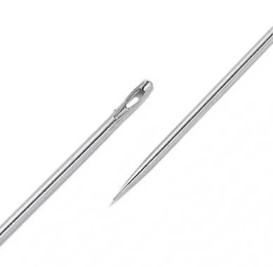 These hand sewing needles in the versions sharps and betweens are made of hardened steel and have a burr-free embossed eye. Their fine and sleekly-polished tip shape, along with the smooth and non-porous, coated surface, can slide well through all fabrics. The attuned spring firmness ensures smooth operation without bending and breaking – even with the finest needles. The needle head is shaped in such a way that the needles can be effortlessly inserted, even without a thimble. Generally speaking, the sharps hand sewing needles are approx. 7 mm longer than the corresponding betweens needles and are used for all conventional sewing work. Many consumers prefer the sharps needles due to their better grip. In contrast, betweens needles are often selected by experienced users for more elaborate sewing work and are popular due to their faster puncturing speed. Prym offers these hand sewing needles in a sharps or betweens version in many individually-sorted packs and assortment packs in sizes no. 1 to no. 11.