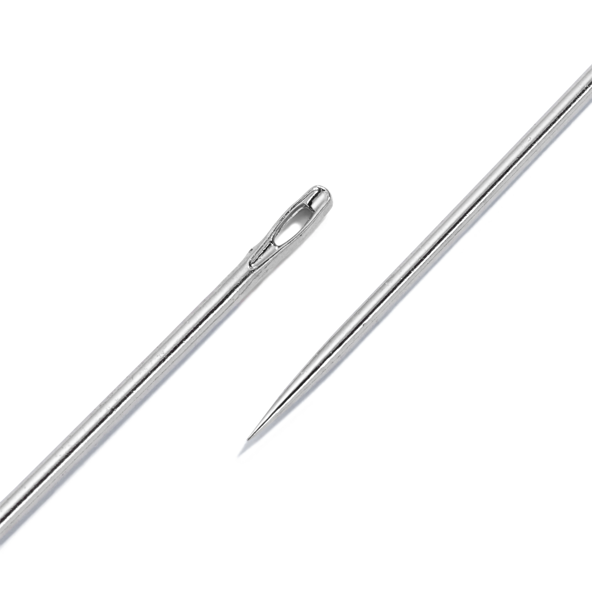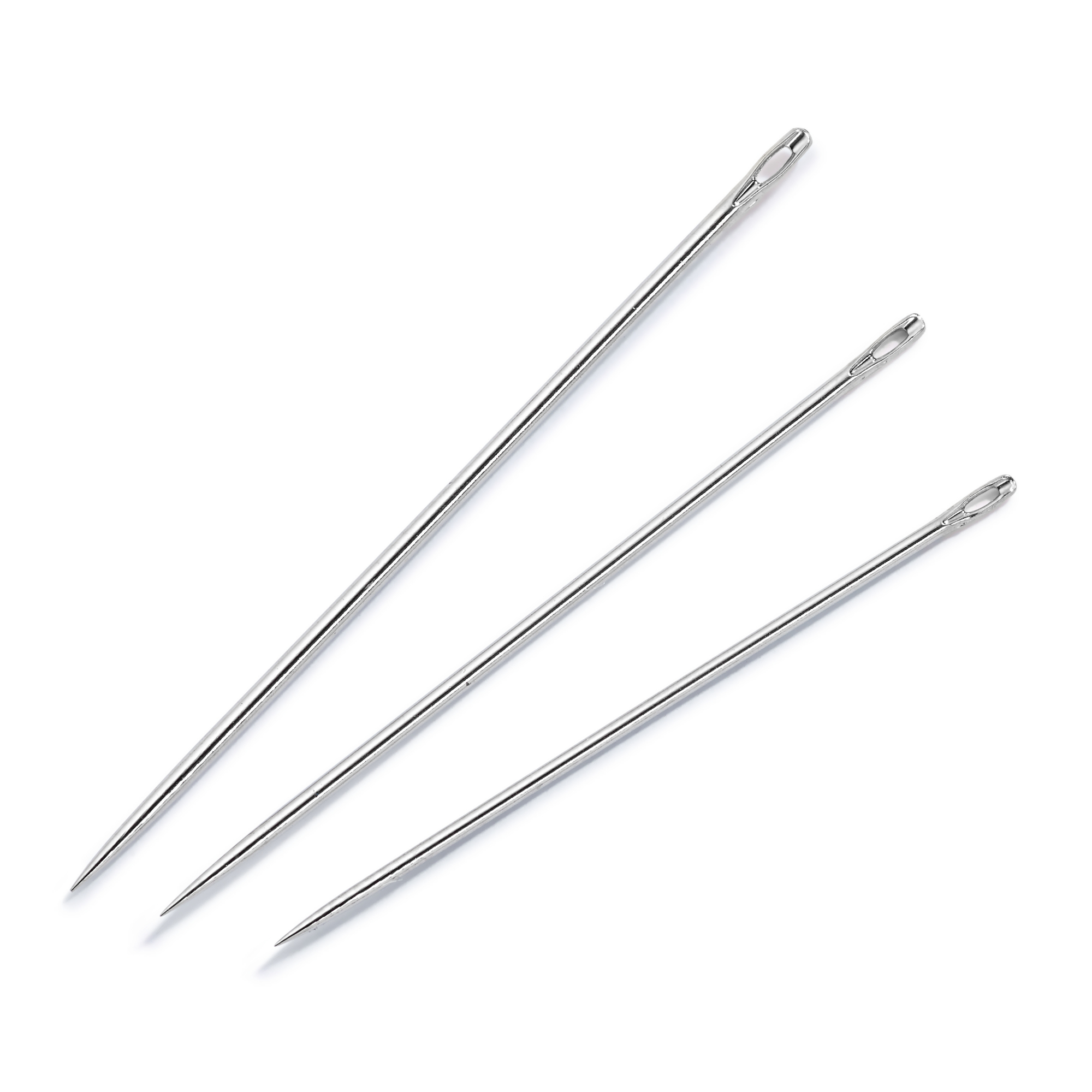 These hand sewing needles in the versions sharps and betweens are made of hardened steel and have a burr-free embossed eye. Their fine and sleekly-polished tip shape, along with the smooth and non-porous, coated surface, can slide well through all fabrics. The attuned spring firmness ensures smooth operation without bending and breaking – even with the finest needles. The needle head is shaped in such a way that the needles can be effortlessly inserted, even without a thimble. Generally speaking, the sharps hand sewing needles are approx. 7 mm longer than the corresponding betweens needles and are used for all conventional sewing work. Many consumers prefer the sharps needles due to their better grip. In contrast, betweens needles are often selected by experienced users for more elaborate sewing work and are popular due to their faster puncturing speed. Prym offers these hand sewing needles in a sharps or betweens version in many individually-sorted packs and assortment packs in sizes no. 1 to no. 11.