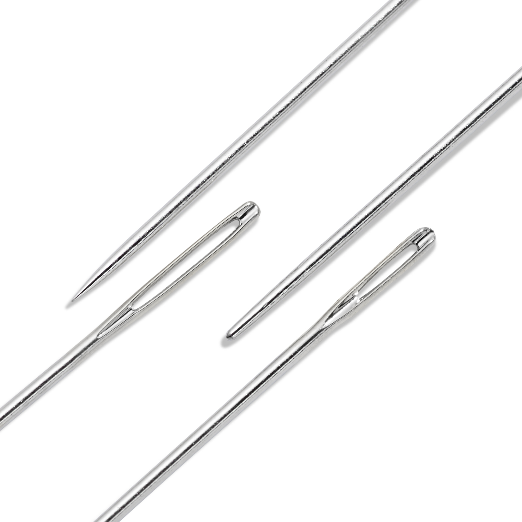 This assortment of 25 fine embroidery and pearl sewing needles in a dark violet dispenser box are suitable for broderie anglaise and pearl embroidery as well as satin stitch and cross stitch work. These needles made of hardened steel have balanced use elasticity and a burr-free, crafted eye. Symbols for different embroidery work are depicted on the transparent lid above the individual compartments. This allows for the needles to always be allocated and sorted without effort. All of the five compartments, each of which contain 5 specific needles, can be opened and secured with a separate lock.