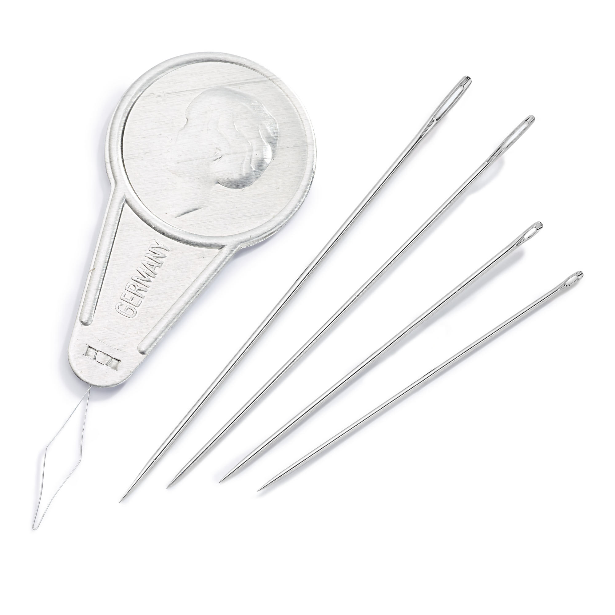 These needle assortments contain 19 or 29 hand sewing and darning needles in various sizes, each pack containinga needle threader. The needles are made of hardened steel and have a crafted, burr-free eye. Therefore, this needle set effortlessly covers all the requirements for smaller and larger sewing and darning work. The included threader is the familiar classic made of aluminium and spring steel, proving to be a practical aid when threading small eyes.