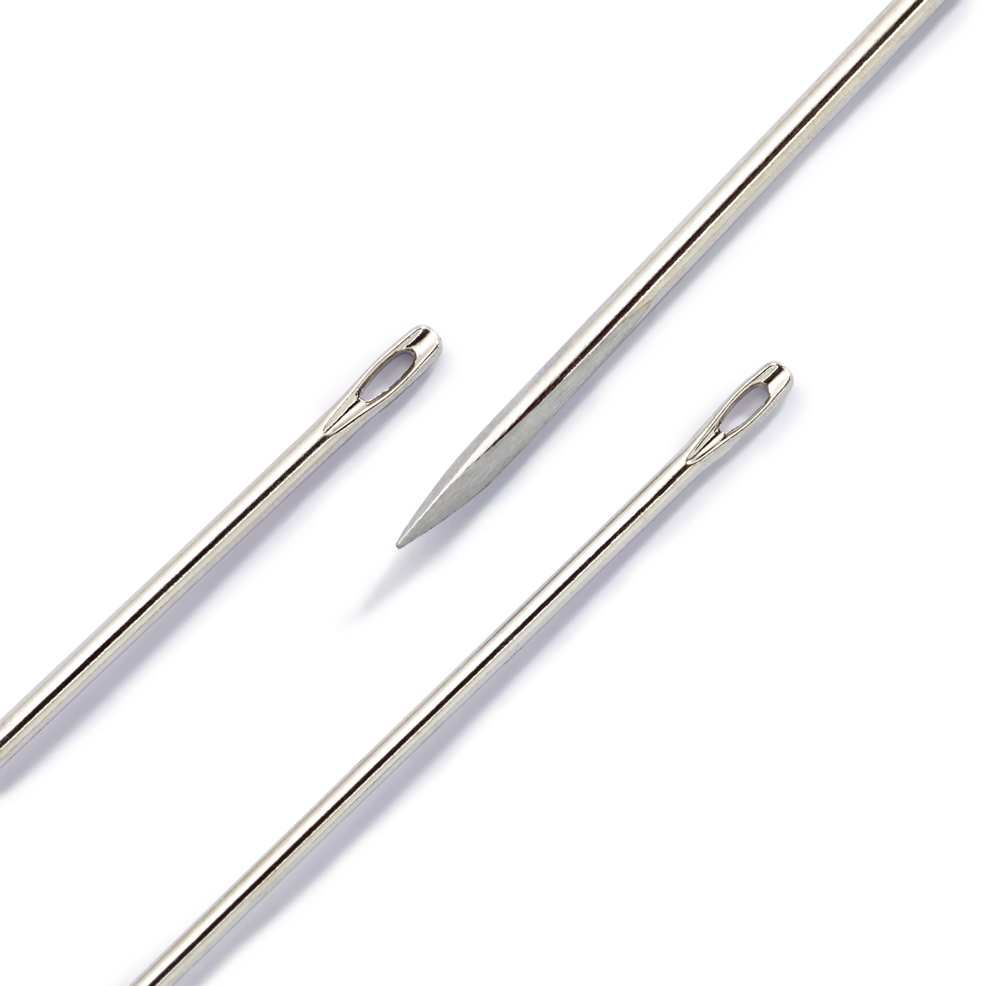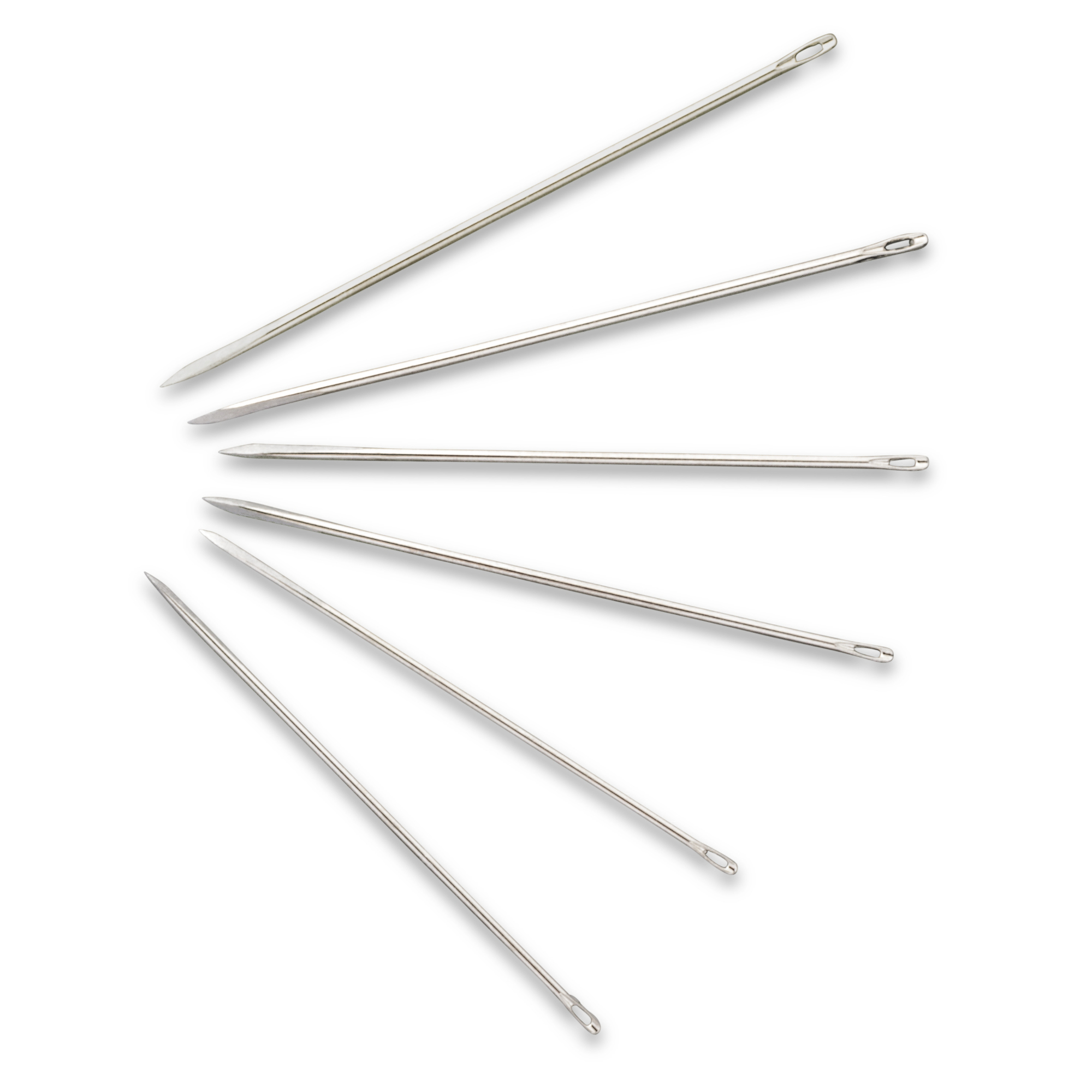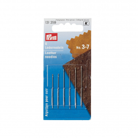 Leather needles made of hardened steel in sizes 3, 5, 7, and 9 are best suited for processing leather. The needles and their triangular tip make them easy to insert into leather material and furthermore prevent them from tearing it. The leather or glovers' needles are available as an assortment in re-sealable packages of 6 or for professional furriers in 4 sorted sizes of 25 units each.