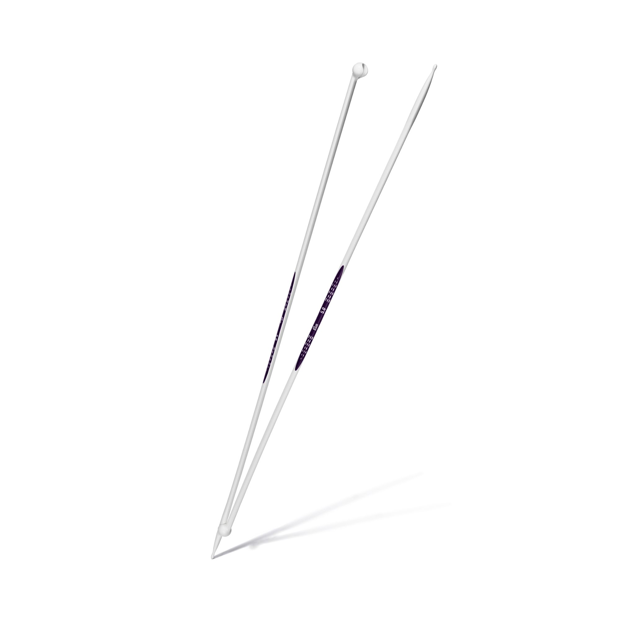 The innovative prym.ergonomics single-pointed knitted needles are a synonym for ease of knitting. The alabaster white knitting needles are made from high-performance synthetic material and are light and flexible and sit comfortably in the hand. The drop-shaped points make the single-pointed knitted needles ideal for beginners, since the yarn slides so easily over the points and picking up the yarn becomes extremely easy. The shaft of the needle is rounded at the front and changes to a triangular cross-section - this allows the stitches to glide freely and easily. The click heads are brilliantly designed to keep two needles together as a pair on one hand and on the other they serve as stitch stoppers. The needle gauges are printed centrally on the needles. All in all: The prym.ergonomics single-pointed knitted needles offer pure knitting joy, even when used over long periods.
