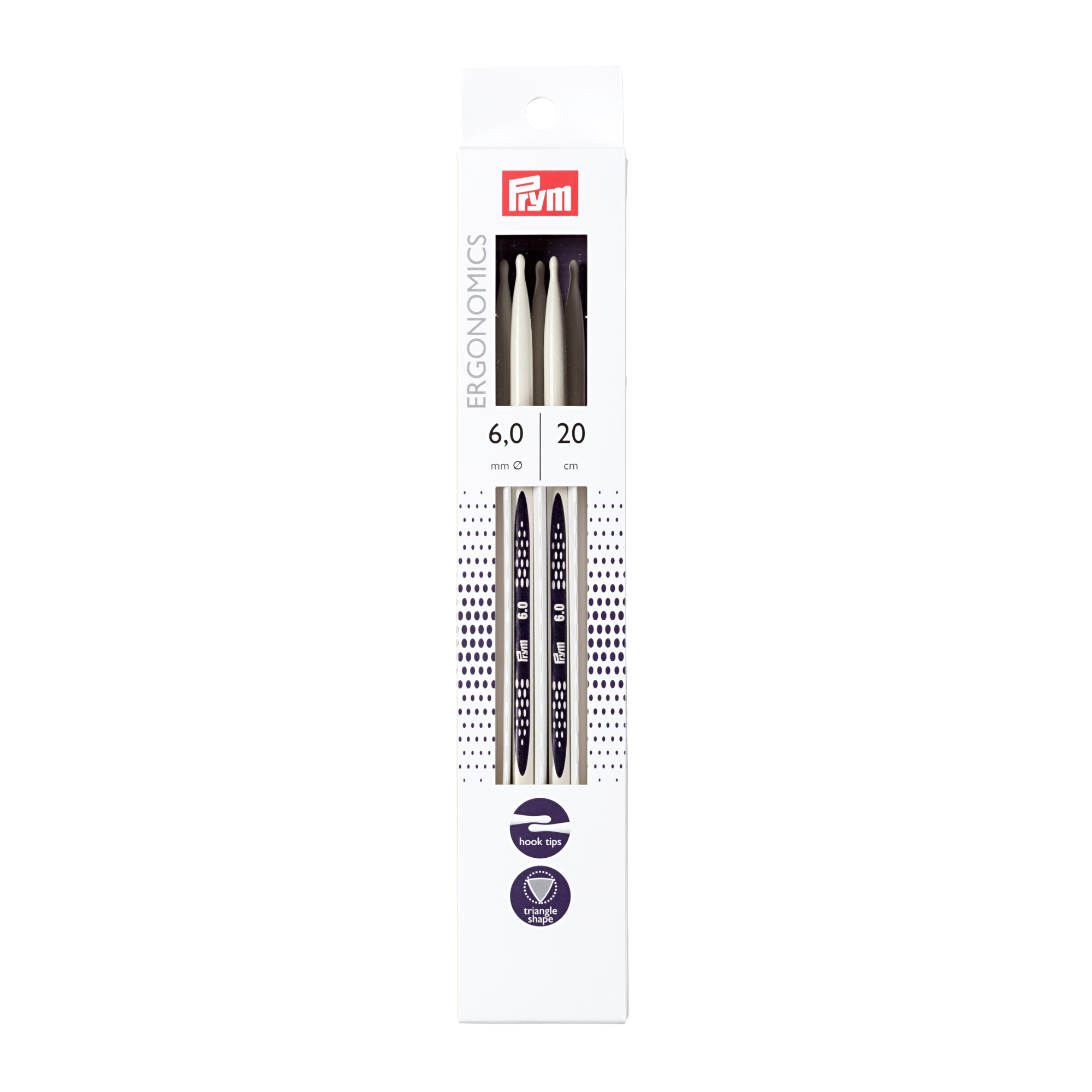 DOUBLE-POINTED KNITTING NEEDLES PRYM.ERGONOMICS, 20CM, 6.00MM