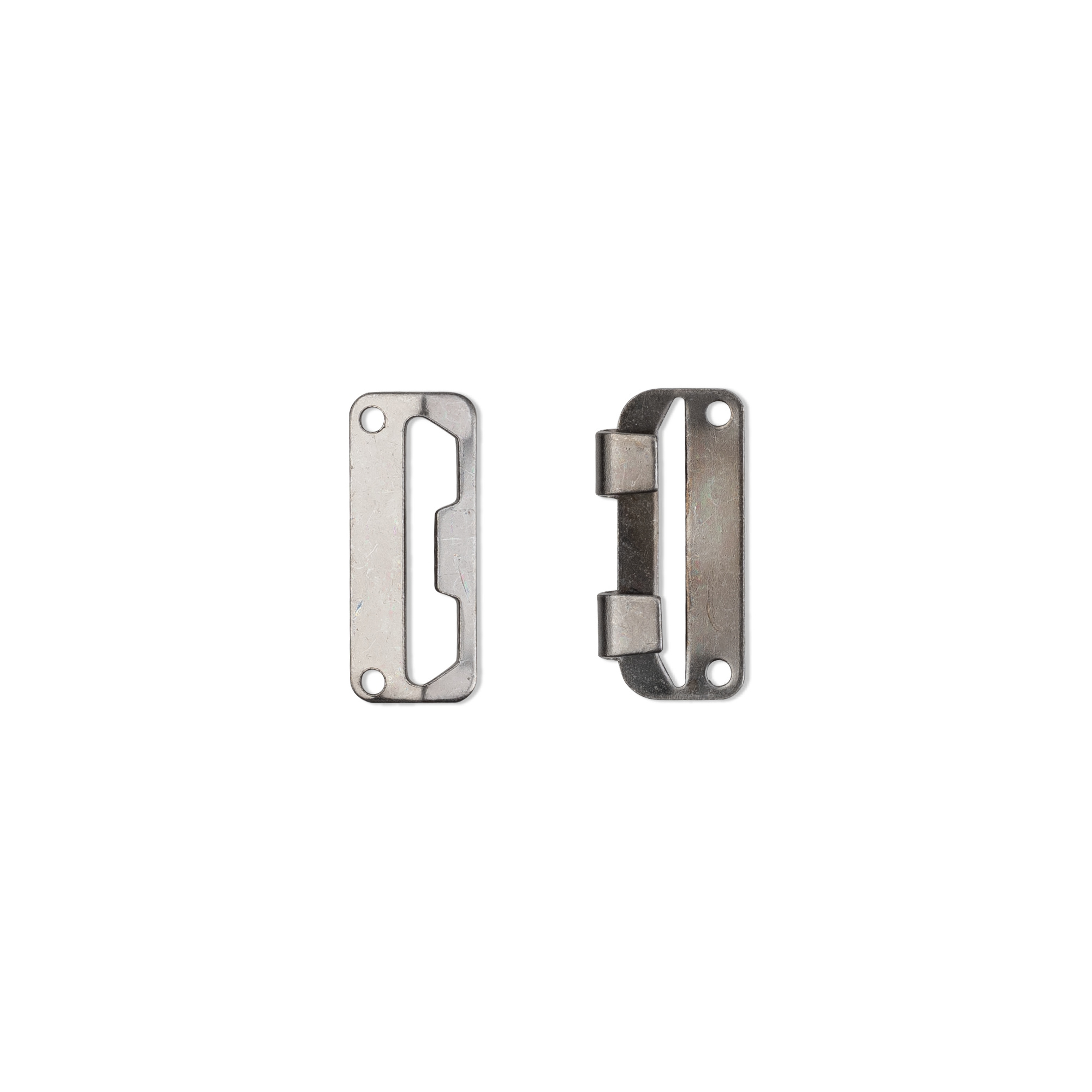 A real classic! The skirt waistband fastener is simple in appearance, but its sturdy design and reliability make it impressive. Its flat finish prevents it being bulky and it is therefore scarcely visible. The hooks and bars are usually used to fasten skirt waistbands, but they area also an ideal choice for trousers, belts for dresses, wedding dresses or suits. They are made from high quality, rust-protected metal and are provided with holes to make them easy to sew on. Their rounded edges and smooth surface promise pleasant handling. There is a selection of skirt waistband fasteners in black and silver and a variety of widths and designs available.