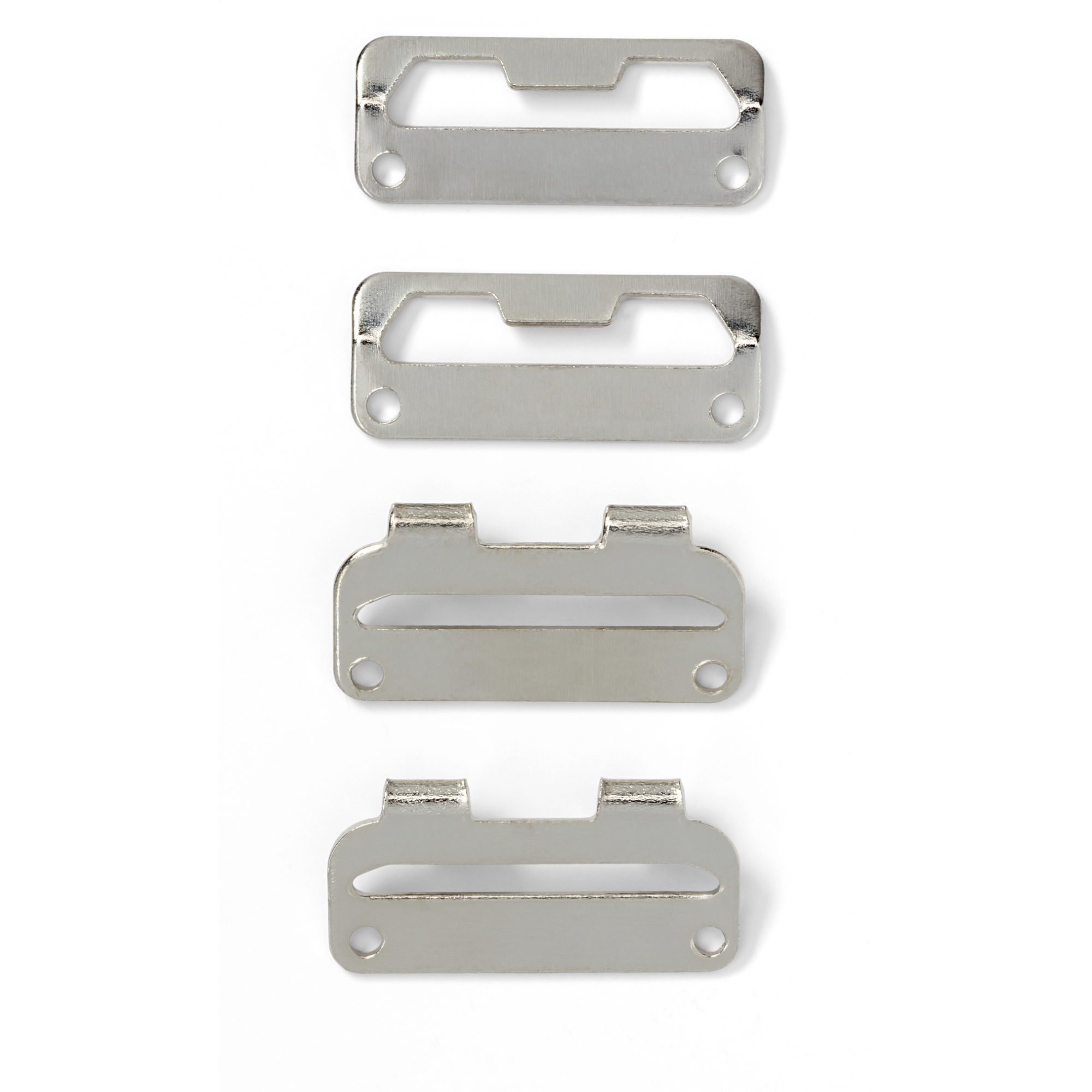 A real classic! The skirt waistband fastener is simple in appearance, but its sturdy design and reliability make it impressive. Its flat finish prevents it being bulky and it is therefore scarcely visible. The hooks and bars are usually used to fasten skirt waistbands, but they area also an ideal choice for trousers, belts for dresses, wedding dresses or suits. They are made from high quality, rust-protected metal and are provided with holes to make them easy to sew on. Their rounded edges and smooth surface promise pleasant handling. There is a selection of skirt waistband fasteners in black and silver and a variety of widths and designs available.
