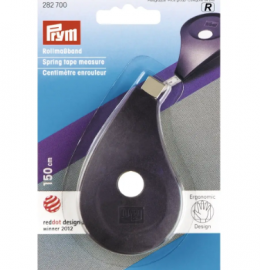 The spring tape measure from the prym.ergonomics series convinces with its ergonomic design, which was awarded the Red Dot Design Award in 2012. The plum blue housing lies on the table with its flat underside, allowing precise measurements. The white 0.3 mm thick tape can be printed with a scale in centimetres or cm/inch scale depending on the model and has a length of 150 cm/60 inch. By means of the innovative guiding of the tape measure in its housing the tape is always smooth on the surface and a retention mechanism holds the tape measure while working in the desired position. With the spring tape measure from prym.ergonomics, measuring is child’s play.