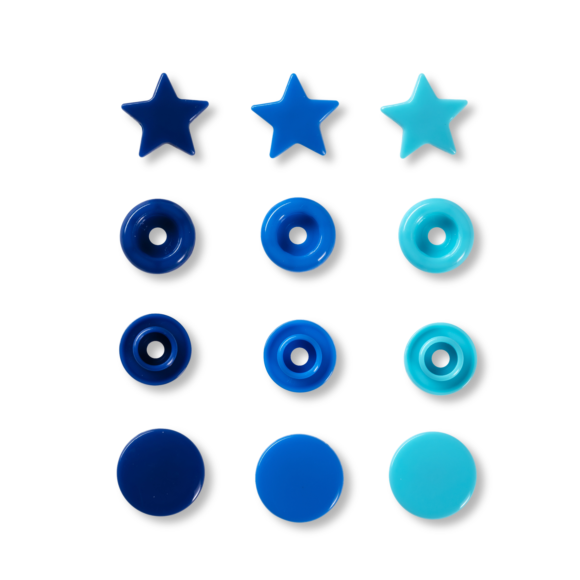 COLOUR SNAP FASTENER, PRYM LOVE, STAR, 12.4MM, BLUE/TURQUOISE/INK