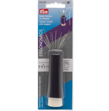 All hand sewing needles and darning needles can now be securely stored, since this plum needle twister from the prym.ergonomics series ensures protected storage and convenient withdrawal of sewing and darning needles. Thanks to the twist mechanism at the base of the needle twister, the needles are twisted out in a fan-like fashion. This lets you recognise all needle types and sizes at a glance, and they can be removed as needed. A magnet on the inside of the needle twister ensures that the needles are in the right position. Includes beautifully-shaped cap, which ensures that the needles stay in the needle twister thanks to its click fastener. The needle twister is available in many different attractive colours, therefore making it ideal for sorting various needle types and sizes up to a length of 64 mm. The practical and beautifully-shaped needle twister was given the Red Dot Design Award in 2011.