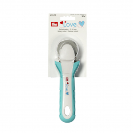 Available in the typical, fresh Prym Love colour scheme: the Prym Love rotary cutter is a real eye-catcher and brings colour to every sewing corner. And it is effective, too. As well as the sharp blade for cutting several layers of fabric, it offers the possibility of adjusting cutting resistance to the thickness of different materials. The patented safety system is a further highlight. When pressure is exerted on it, the blade of the rotary cutter automatically slides back. If the blade is in the rest position, the guard slides into place over the blade. The ergonomic, rubberised soft grip prevents the handy rotary cutter from slipping out of your hand even with fairly heavy pressure. Perfect for patchwork, quilting and dressmaking!