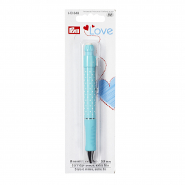 This exclusive marking pen from Prym is particularly suitable for marking seams and patchwork. In particular, relatively fine and accurate work with stencils can be mastered with this marking pen. It is shaped to sit comfortably in the hand and its fine white or coloured cartridge guarantees accurate tracing of markings and pattens onto light-coloured and dark fabrics. There is an eraser cartridge on the upper end of the pen to reduce markings. When washed, the markings disappear completely. The white and coloured refill cartridges and the eraser cartridges can be ordered and replaced.
