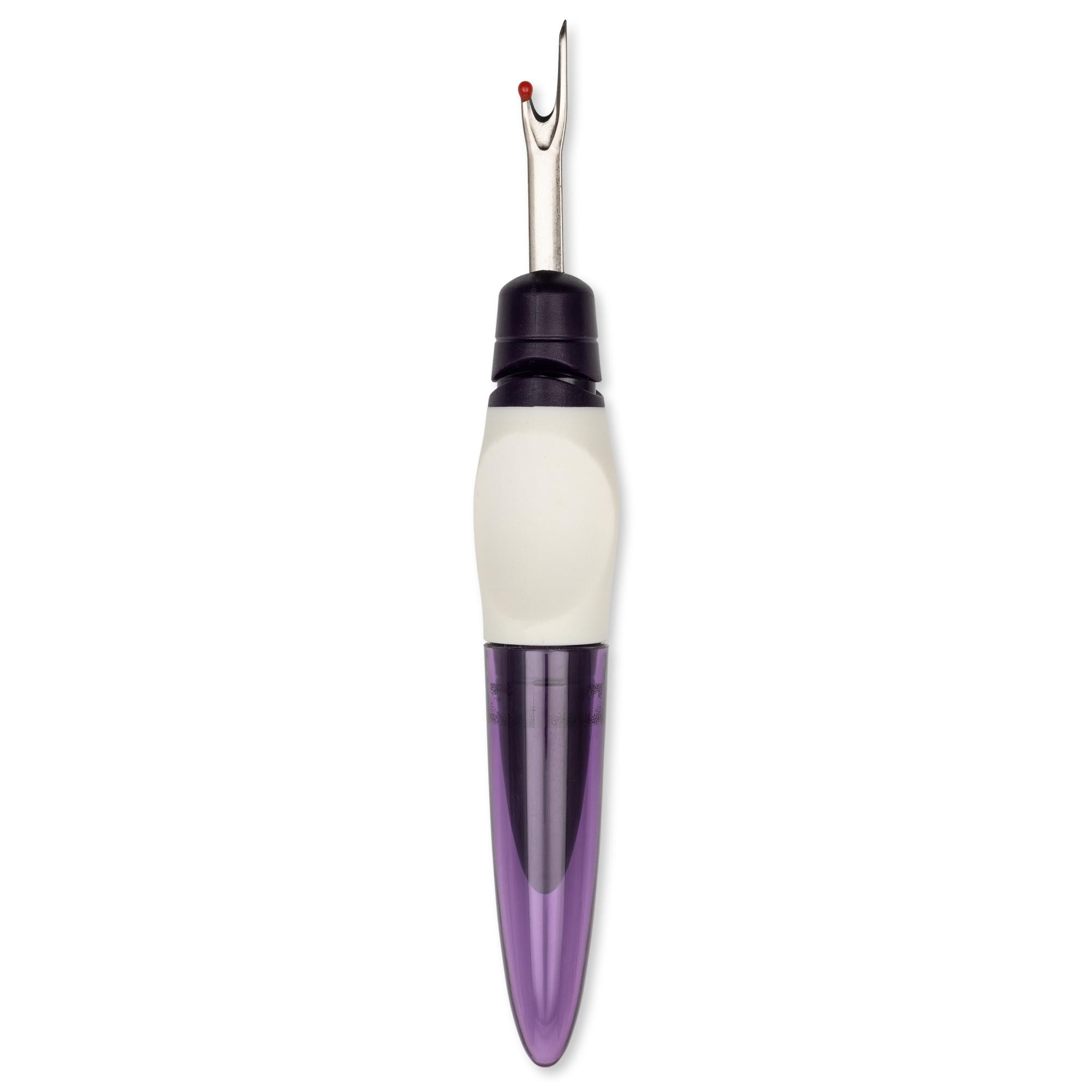 Sharp and handy - these are the distinguishing features of the Prym stitch ripper from the prym.ergonomics range. Ideal for unpicking fabric seams, the most impressive feature of the stitch ripper with its sharp blade and rounded tip is the ergonomic shape of its handle. The recessed grips are both soft and anti-slip and let you work for long periods without fatigue. A sturdy Prym stitch ripper, which both looks attractive and sits comfortably in the hand and scores because of its safety end cap. And if you want to lengthen the handle when unpicking seams, you can stick the end cap on the end of the handle, where it locks into place. The stitch ripper from Prym can also be conveniently hung around your neck. A handy stitch ripper, ergonomically designed to impress beginners and professionals alike.