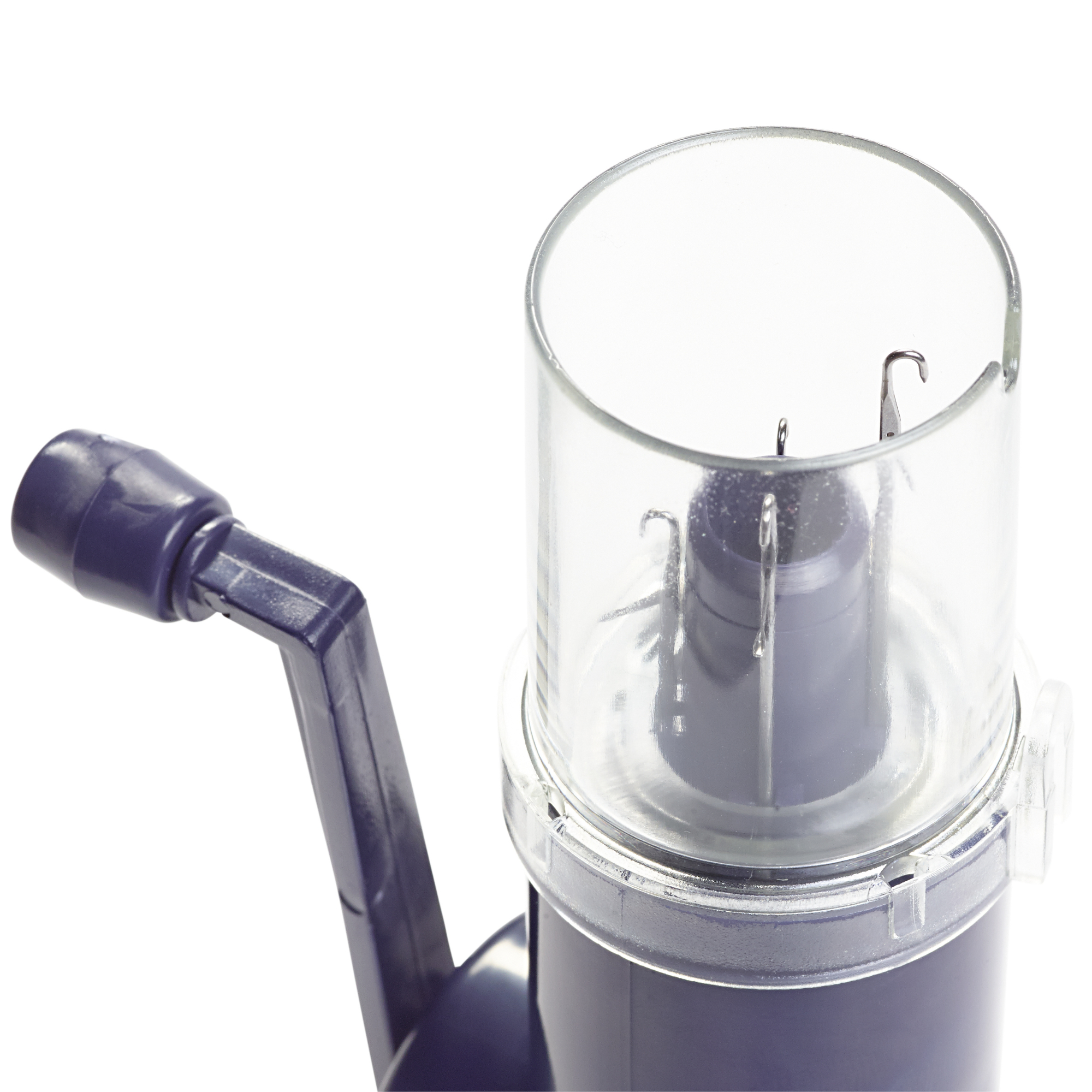 The MINI knitting mill is the smallest semi-automatic knitting mill in the product line. It is so easy to use that even elementary school children will be able to enthusiastically knit tubes in many different colours. After the threads are guide through the lower and upper thread guides, they can easily be slipped into the mill's centre shaft. Now you only need to be mindful of the hook order during the first turn and from then on, you simply rotate. Weighed down by the included weight, the finished knitted tube slips out from below the knitting mill and can be further worked on when it has reached the desired length. Best used with firmly-twisted wool for the 3-3.5 mm pin gauges Packaging includes detailed instructions.
