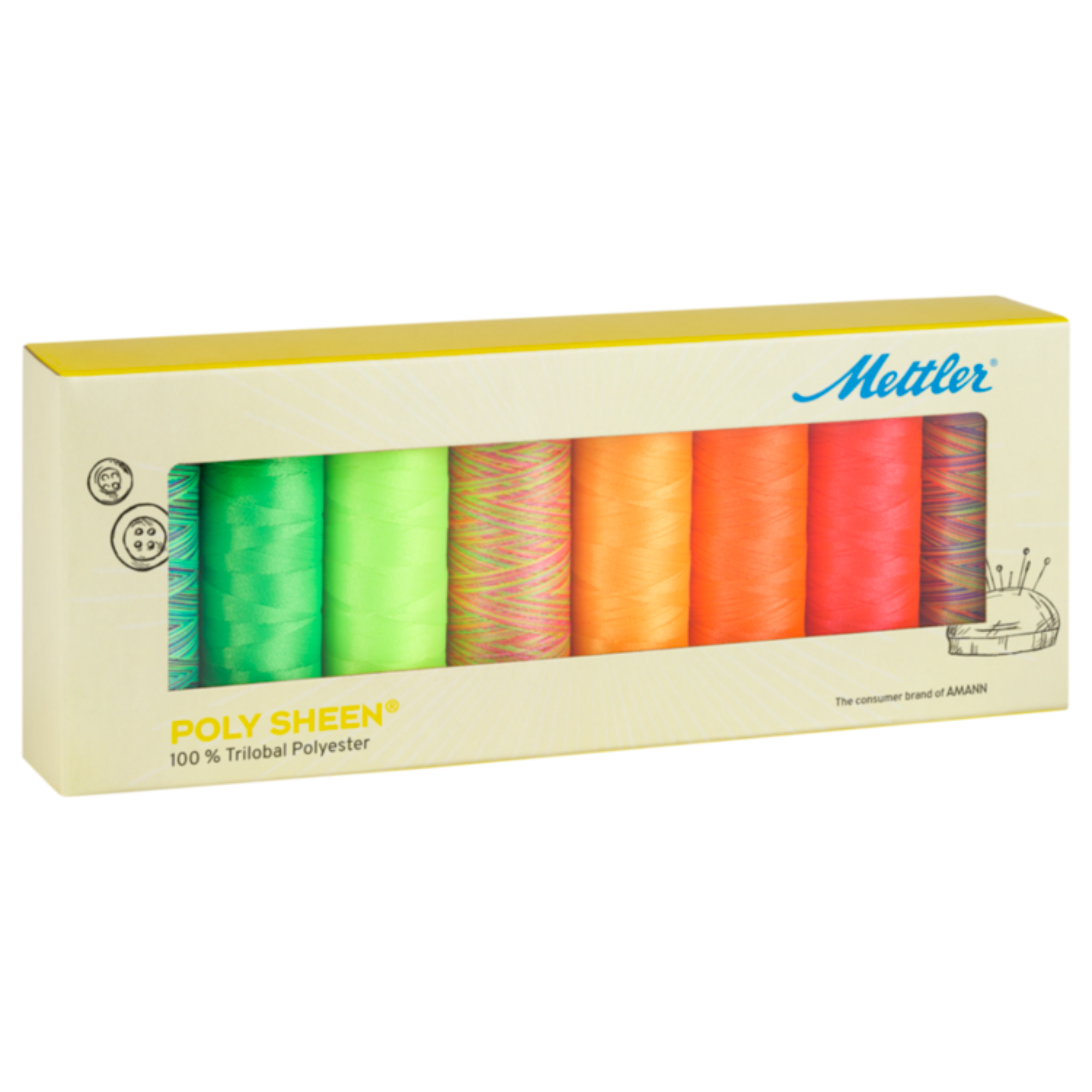 The classic embroidery thread among the Mettler sewing threads with a special touch! With our embroidery and sewing thread POLY SHEEN MULTI you are buying exactly the right thread for colorful creations. Familiar quality in a fancy design: the sewing thread is tearproof, extremely abrasion resistant, colorfast and wonderfully decorative. This is made possible by its special composition: the trilobal filament cross-section allows the sewing thread not only to withstand the highest levels of stress, but also to reflect more light due to its larger surface. The result is an exceptionally beautiful sheen that outshines conventional embroidery and decorative sewing threads.